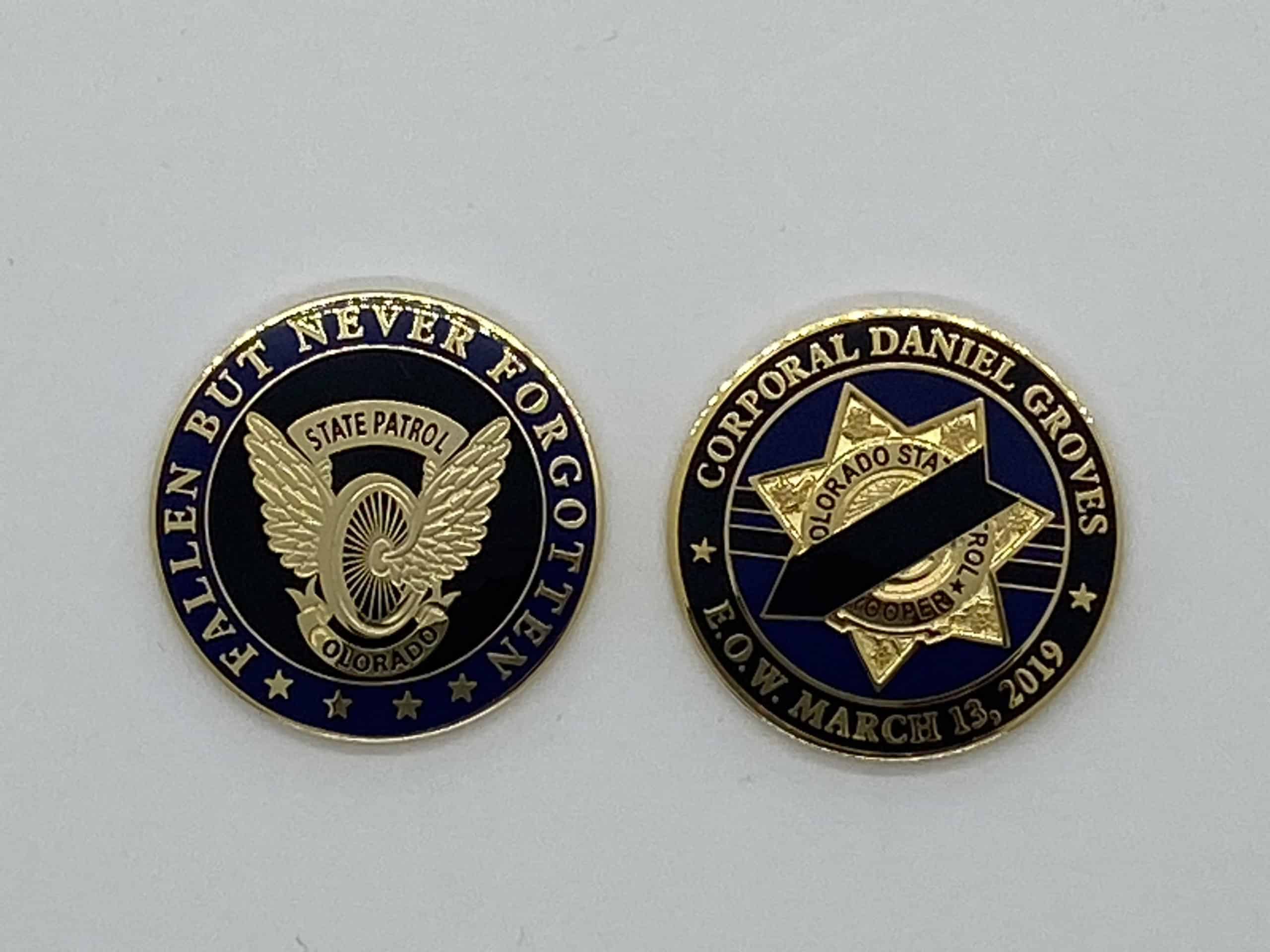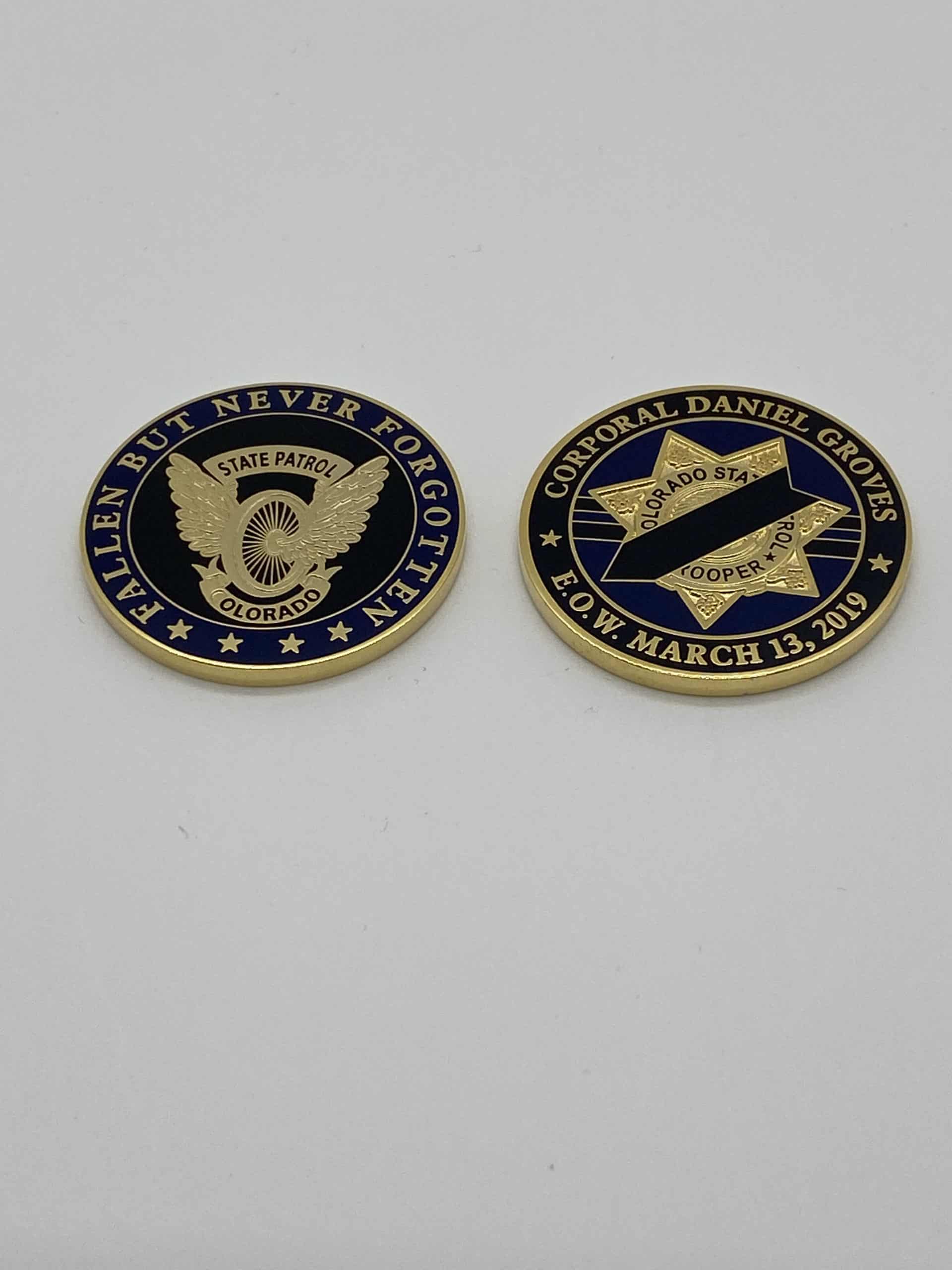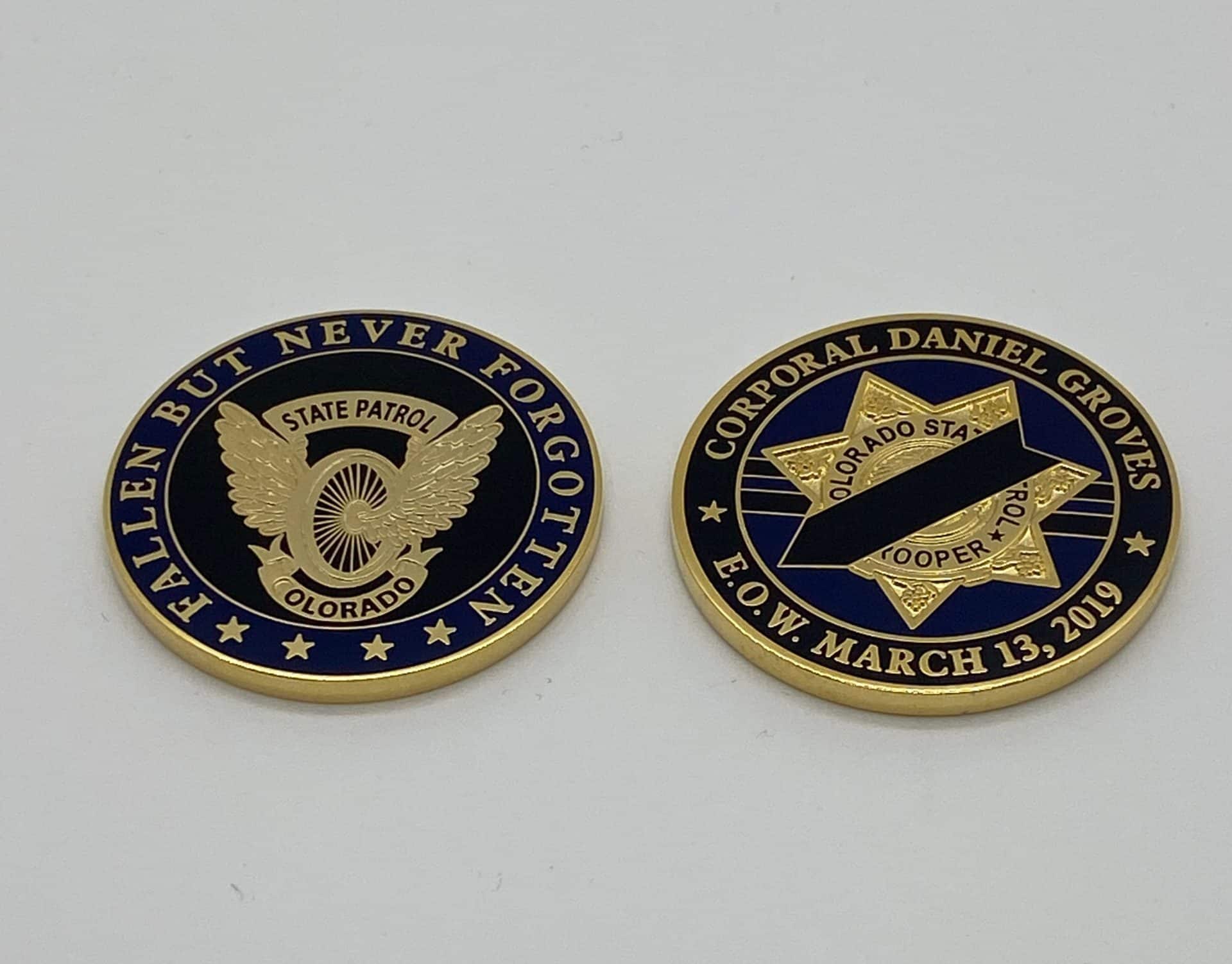 This memorial challenge coin honors Corporal Daniel Groves
